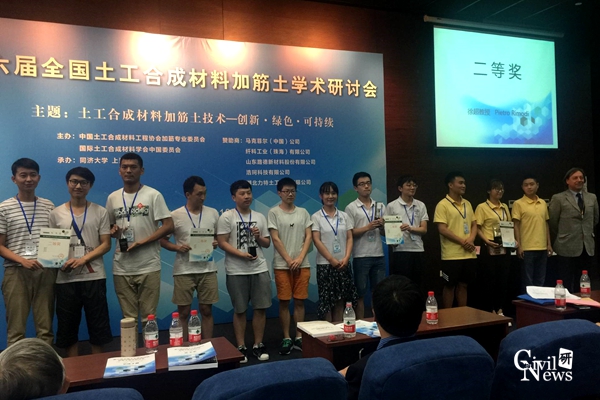 2017年6月16日~18日,马克菲尔杯第三届全国大学生加筋土挡墙设计大赛在上海同济大学举行。本次大赛由中国土工合成材料工程协会主办,同济大学、马克菲尔中国公司承办,初赛共收到全国34所高校的56组设计方案,通过各高校教授与相关领域专家双向盲评,筛选出来自29所高校的34支队伍进入决赛。威尼斯官网参赛队由苏谦教授指导,三位队员分别为88038威尼斯的研究生崔雅莉,本科生左泽豪、刘喆。经过激烈的角逐,威尼斯官网参赛队喜获二等奖。
