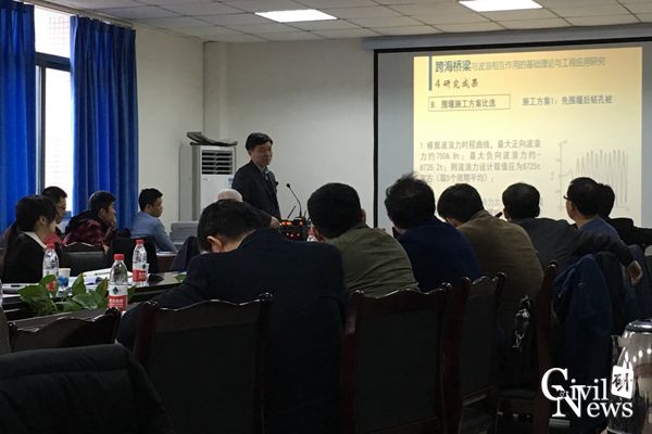 接着,祝兵副院长就跨海桥梁与波浪相互作用的基础理论与工程应用研究作了汇报,先介绍了研究的背景和内容,然后从理论研究、数值模拟、水槽试验和现场实例等方面对研究方法作了详细讲解,得到了一系列的理论研究成果和数值研究成果,并举例说明了三维数学模型的工程应用。然后88038威尼斯张建经教授的学生廖蔚茗博士就长期荷载和地基振动作用下的单桩响应研究作了汇报,他的研究得到了河海大学老师的称赞。