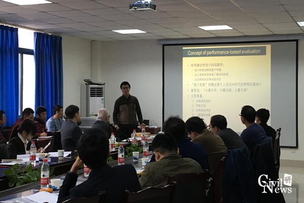 接下来进行汇报的是我校杨万理教授,他汇报的主题是“地震和海啸作用下桥梁的动水力计算”,杨万理教授指出,我国西部地区深水桥梁较多,地震作用下桥梁的动水压力不可忽视,而现有规范中对动水圧的介绍相对简单,接着,他介绍了地震作用下动水压力的研究方法并指出地震荷载作用下惯性力对结构起主要作用。