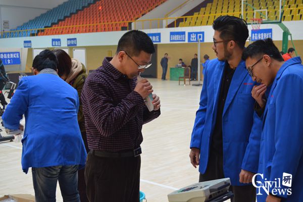 正在进行肺活量测试的老师