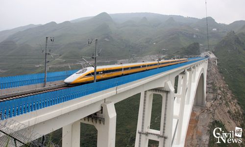 2016年9月24日,和谐号CRH380AJ-0202高速综合检测列车以333km/h的速度在北盘江特大桥上成功试跑,标志着作为沪昆高铁控制性工程的北盘江特大桥顺利通过验收,保证了2016年底沪昆高铁全线顺利开通运营。