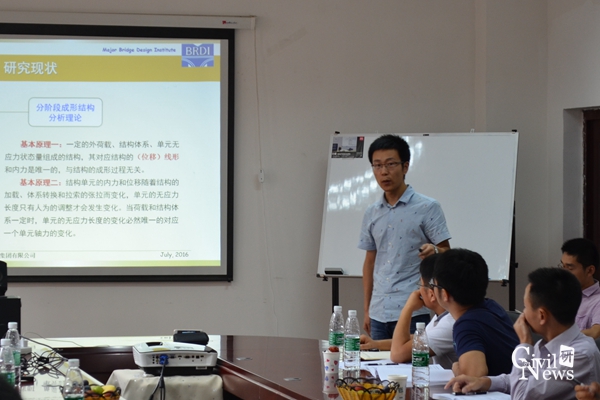 与会教授和专家就进行了热烈的研讨,重点交流了对桥梁分阶段成形结构分析理论在深水大跨桥梁施工中的应用前景和技术难点等,并就该理论的总结和发展提出了很好的意见和建议。