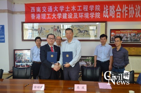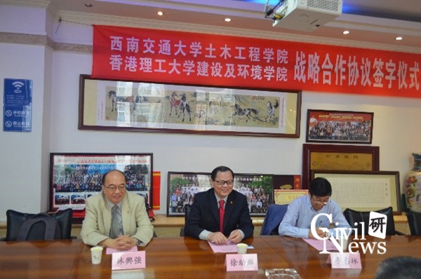 紧接着香港理工大学徐幼麟教授表示,在国家一带一路的战略背景下,香港的大学也应该参与进来,而在轨道交通领域西南交大首当其冲,在基础建设的过程中会产生大量的科研课题,香港理工大学建设与环境学院也希望多参与到这些科研问题、难题当中来。他表示两个学校优势互补,非常看好与西南交大土木学院的合作。